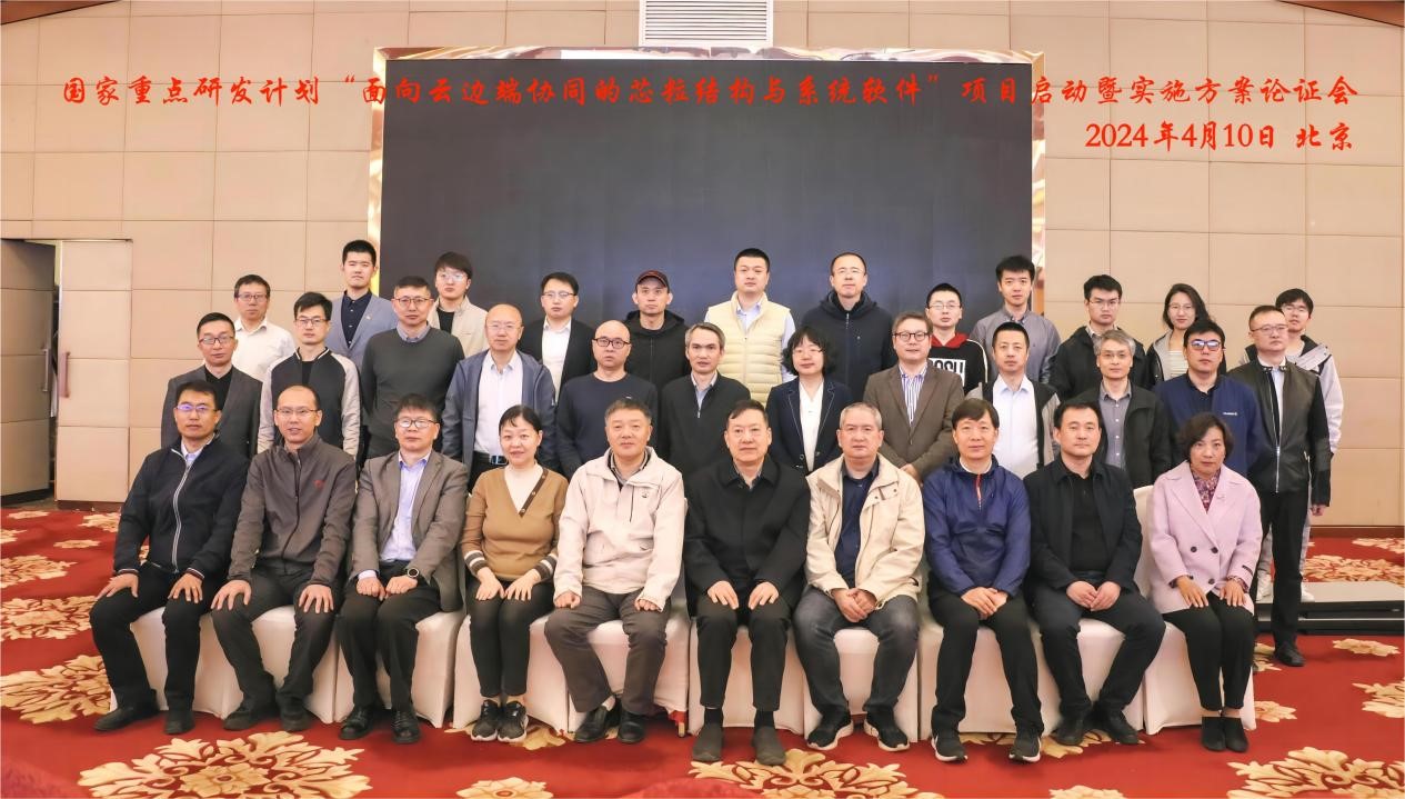 2024年4月10日,国家重点研发计划“面向云边端协同的芯粒结构与系统软件”项目启动暨实施方案论证会在北京召开。该项目由best365手机版官方网站牵头,联合中移动信息技术有限公司、哈尔滨工业大学、国网河南省电力公司、国电南瑞科技股份有限公司、山东高速信息集团有限公司、卡奥斯工业智能研究院(青岛)有限公司、天津大学和北京友友天宇系统技术有限公司共同承担。本项目旨在突破面向云边端协同的芯粒结构和系统软件共性关键技术,服务国家数智化转型战略。