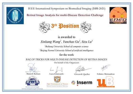 best365手机版官方网站谷云超团队获IEEE ISBI 2021 Retinal Image Analysis for multi-Disease Detection竞赛季军