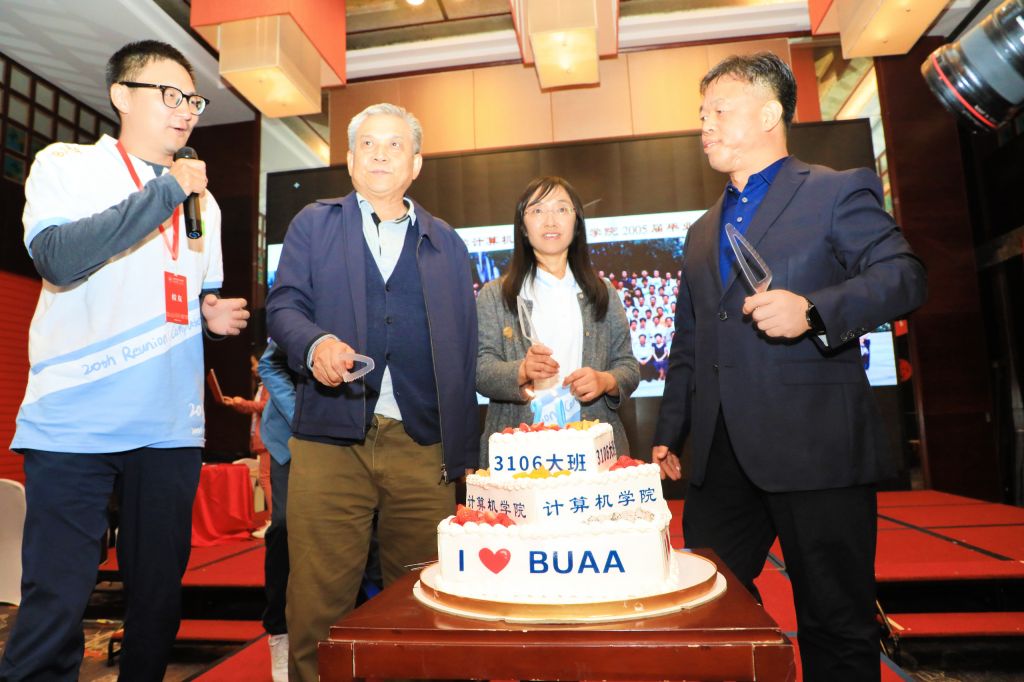 一首航二代的《歌声与微笑》拉开了归航欢迎晚会序幕,优美的歌曲唤起校友们对青春岁月的记忆。晚会内容精彩纷呈,班级走秀、吉他弹唱、古筝表演、大小合唱、海外同学祝福视频等节目,赢得了热烈的掌声。班主任张茂林、兰雨晴、杨海燕三位老师和企业家代表唐彬森校友分别结合自身经历与大家分享了对北航精神的理解和传承。最后,大家共同为20年的情谊庆生,结束了难忘而美好的一天。