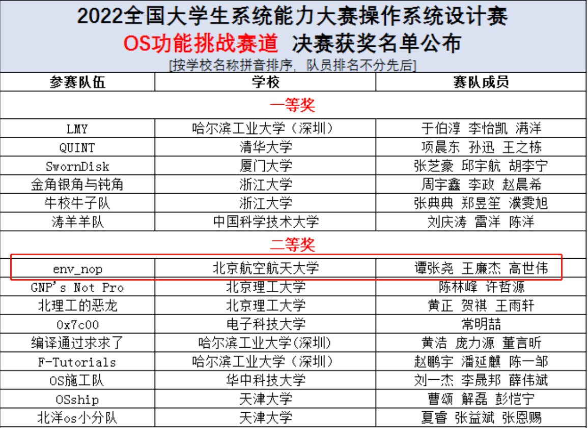图3:操作系统功能挑战赛部分获奖队伍