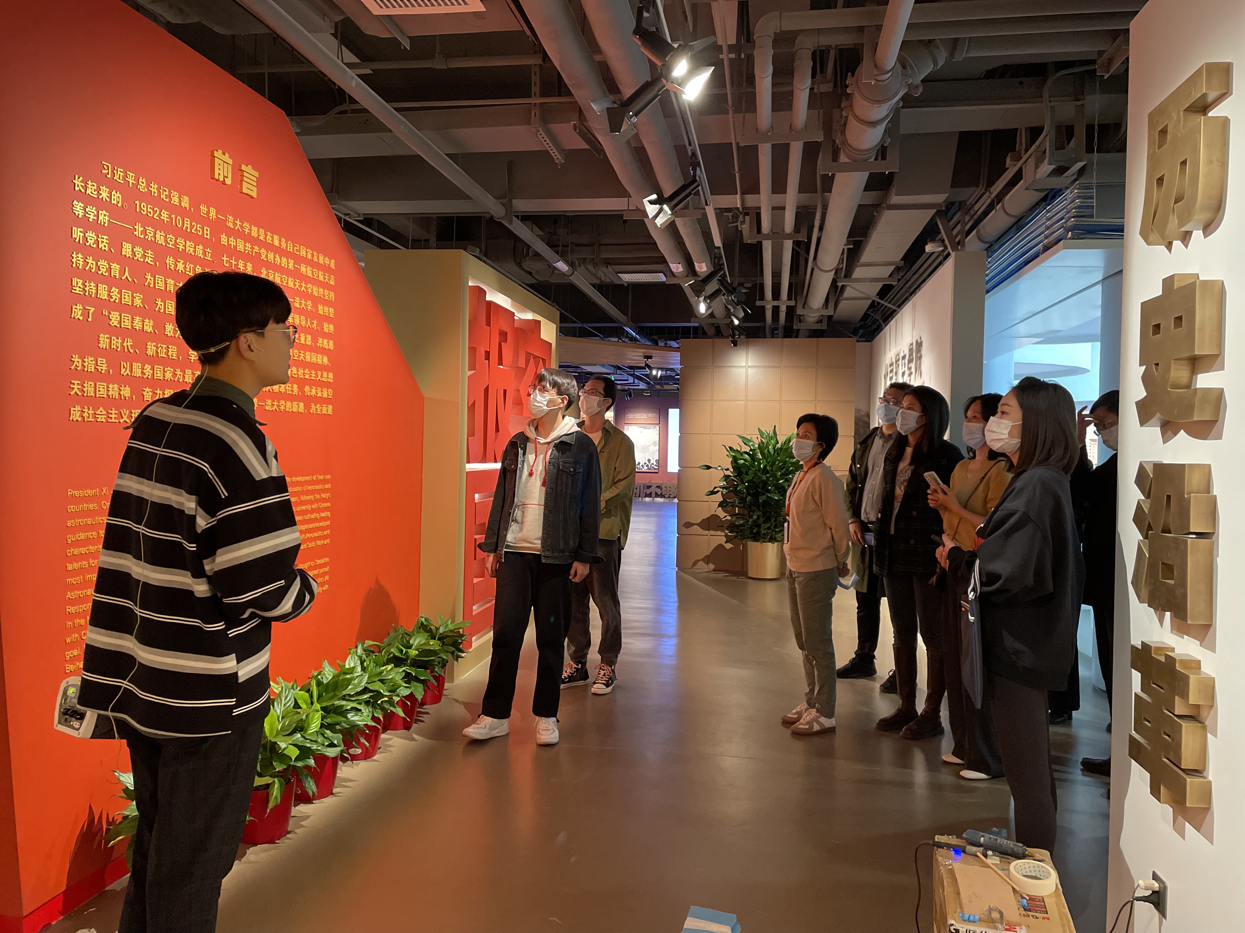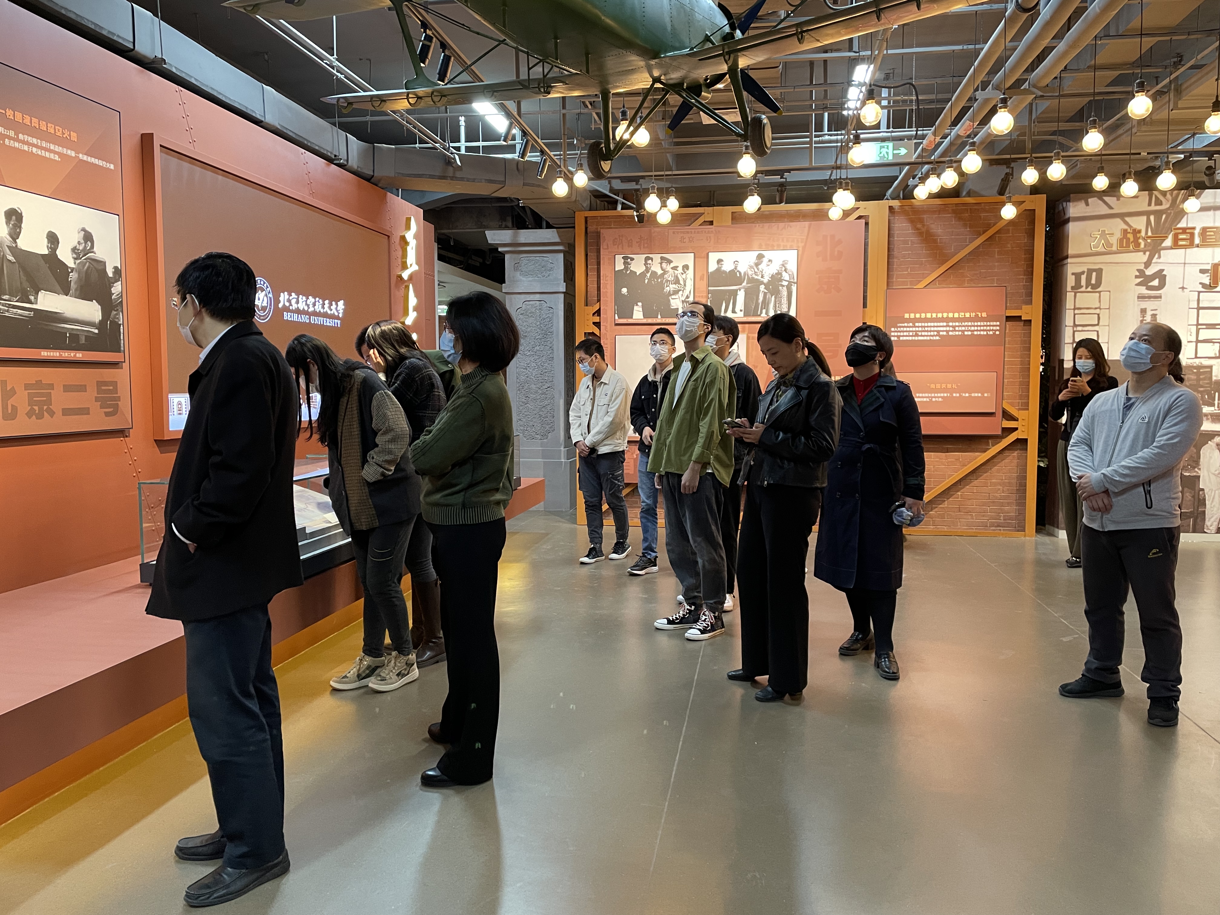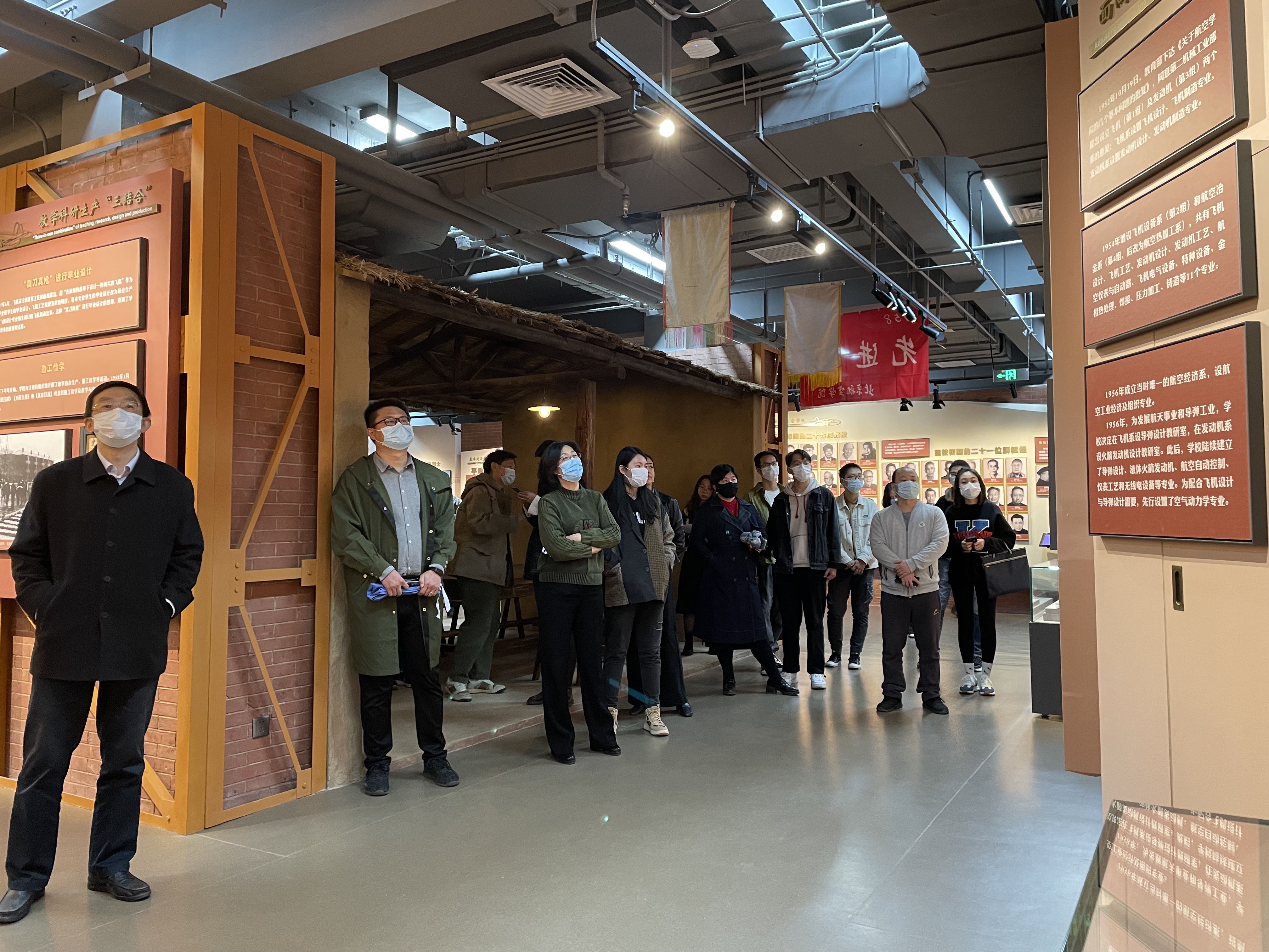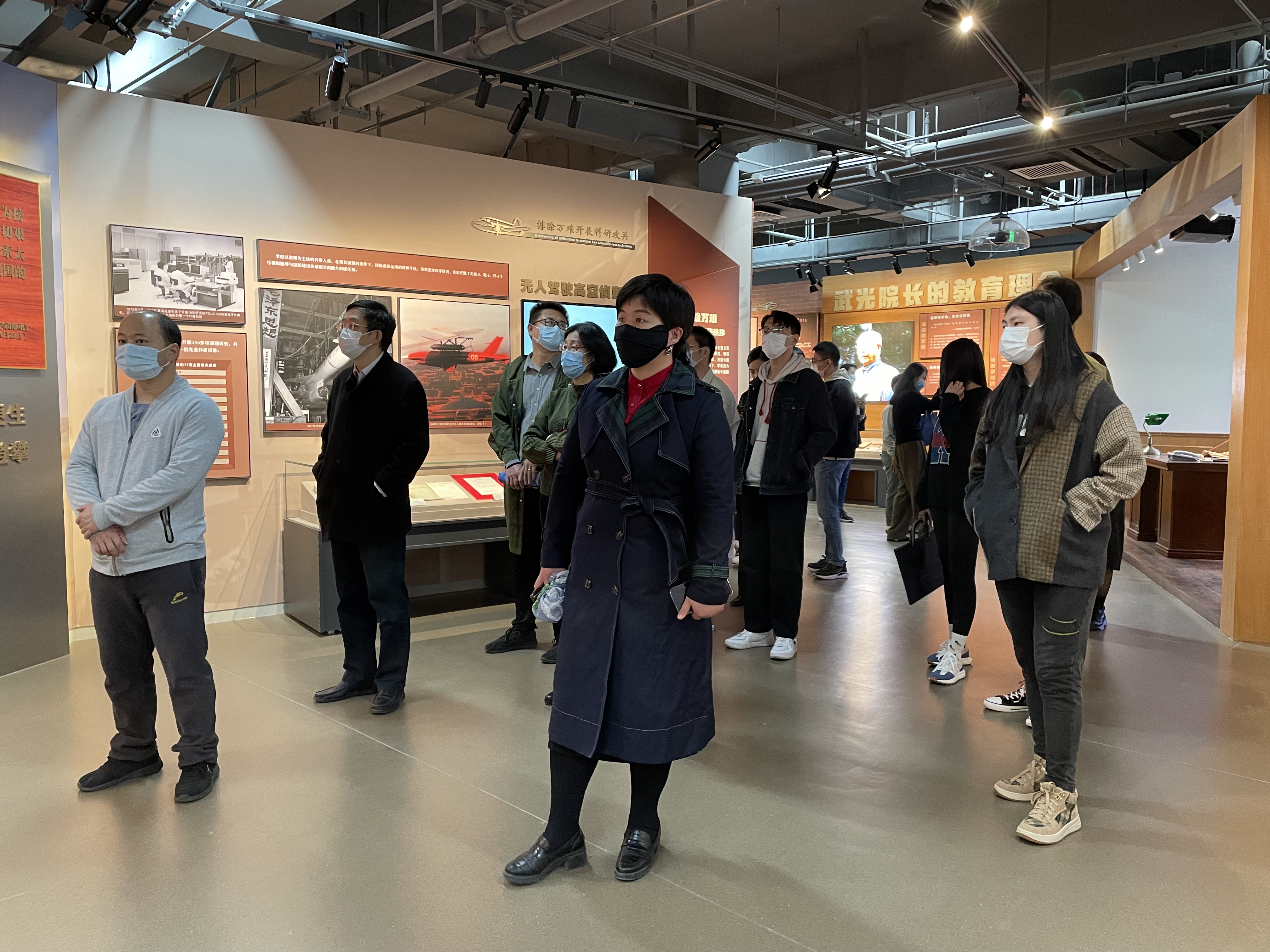 讲解员向大家讲述,建校初期为了保密需要,学校校门和校徽都不能出现校名文字,北航人从那时起就沉淀了隐姓埋名、务实拼搏的品格。大家纷纷表示,在新时代、新征程中,要继续把服务国家作为最高追求,继续锤炼敢当实干的北航精神,为祖国航空航天事业和高等教育发展贡献自己的力量。