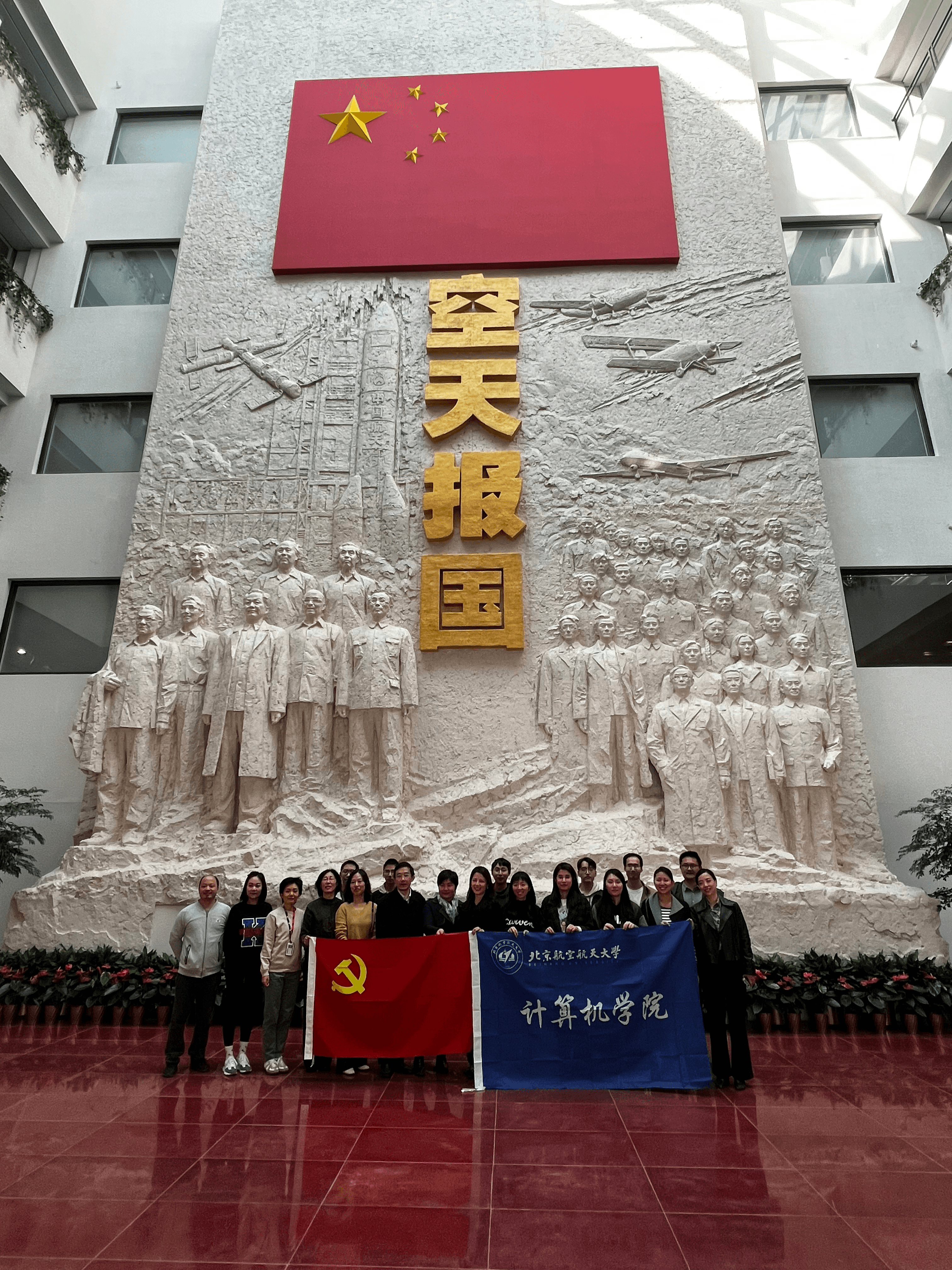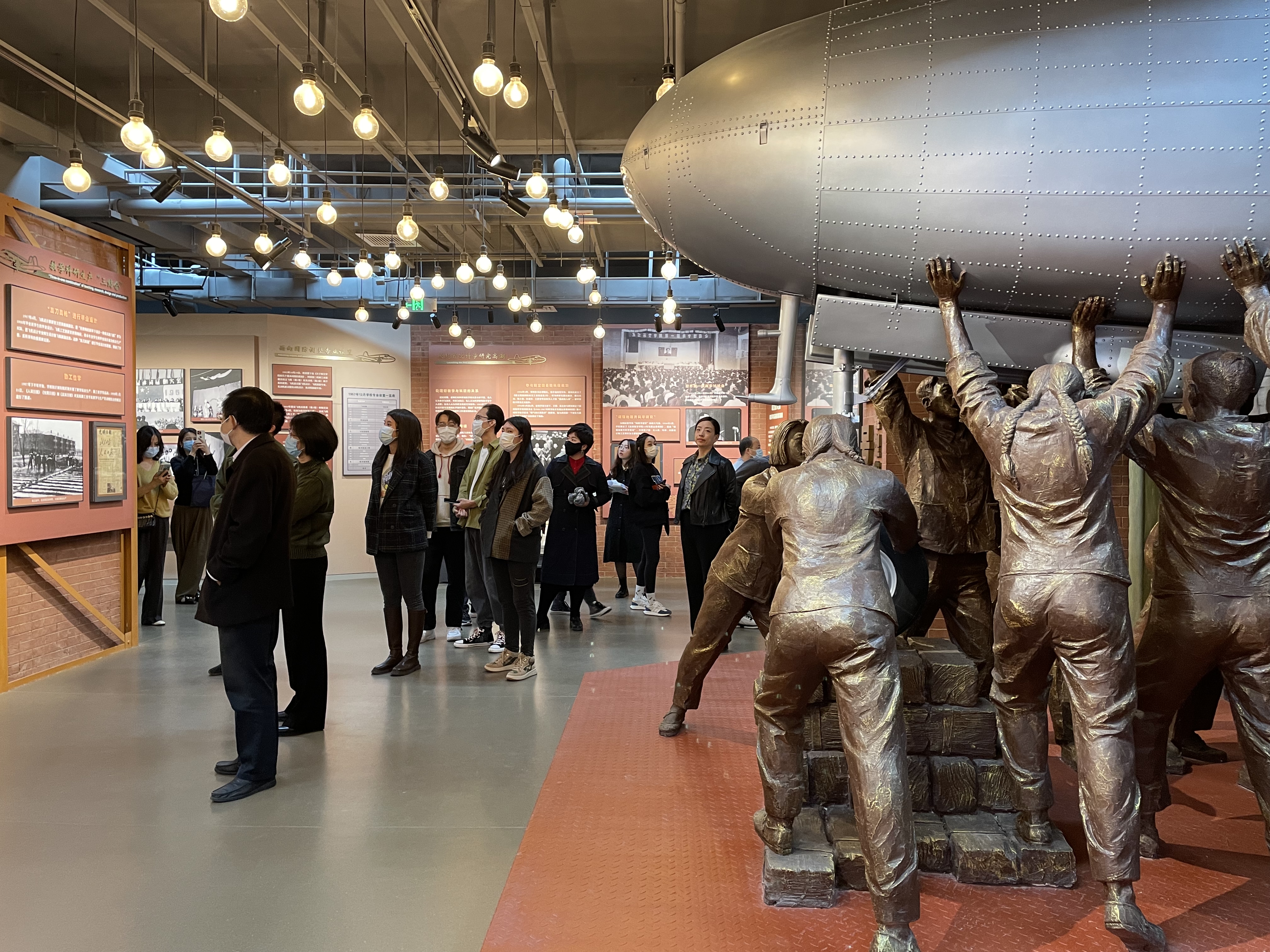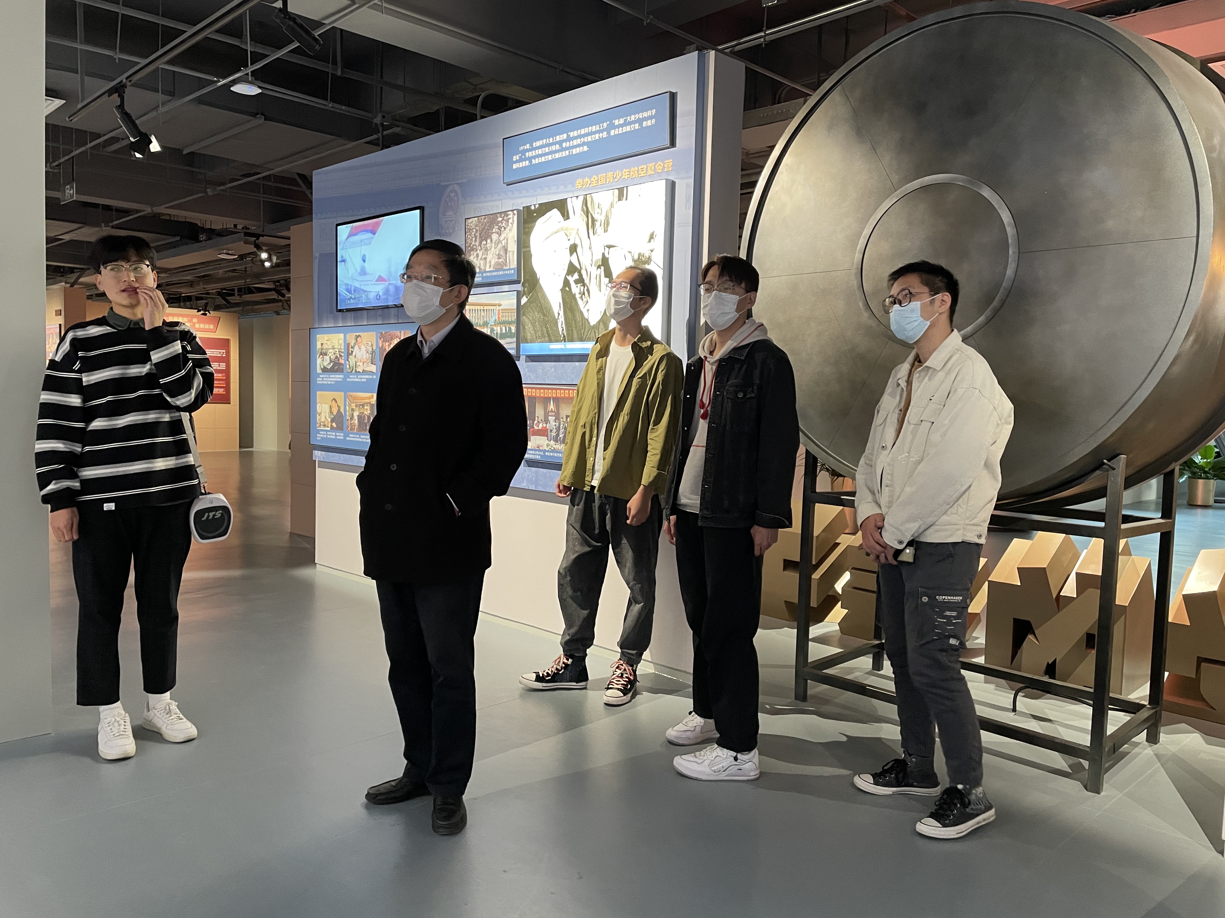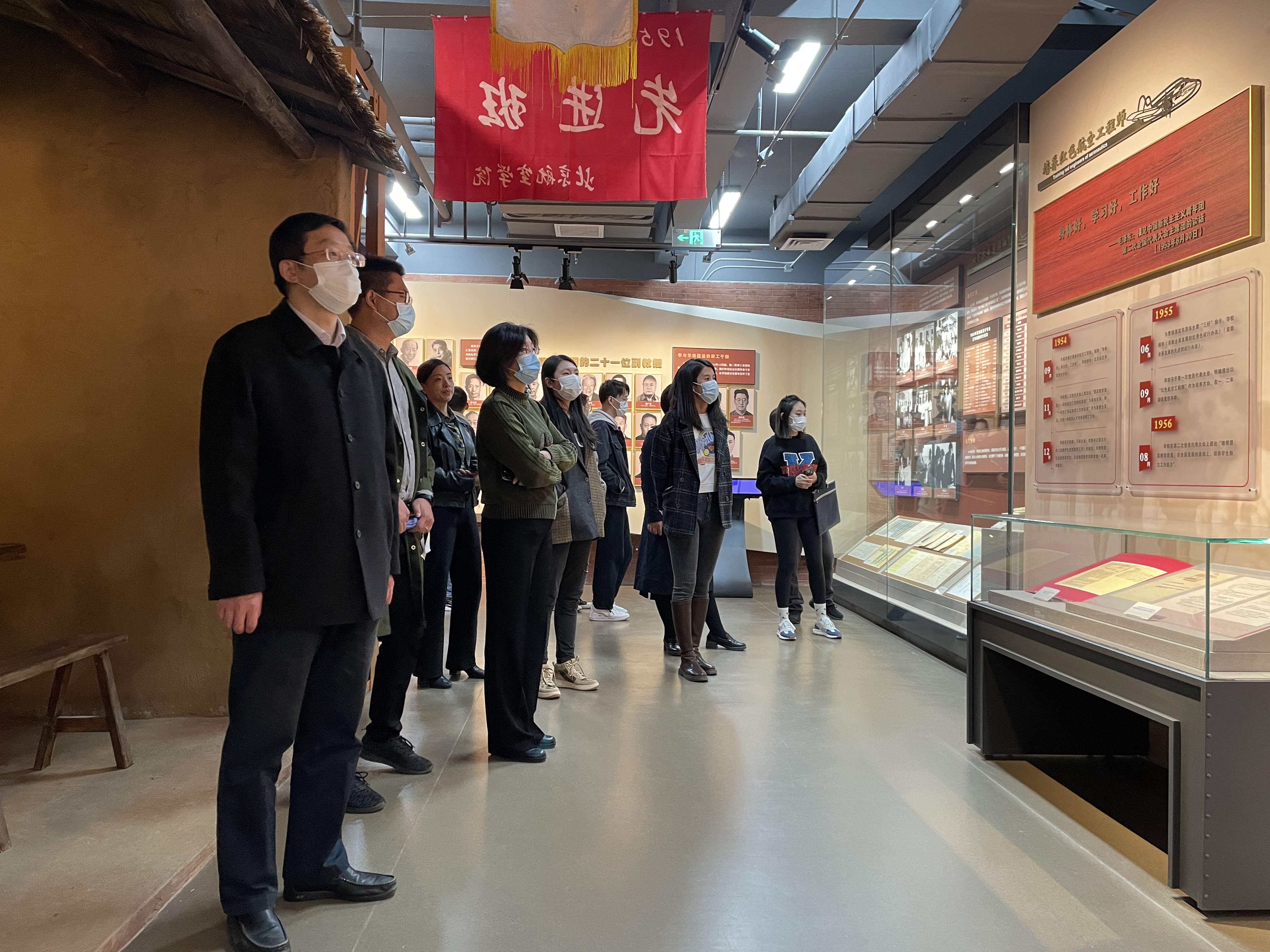 讲解员向大家讲述,建校初期为了保密需要,学校校门和校徽都不能出现校名文字,北航人从那时起就沉淀了隐姓埋名、务实拼搏的品格。大家纷纷表示,在新时代、新征程中,要继续把服务国家作为最高追求,继续锤炼敢当实干的北航精神,为祖国航空航天事业和高等教育发展贡献自己的力量。