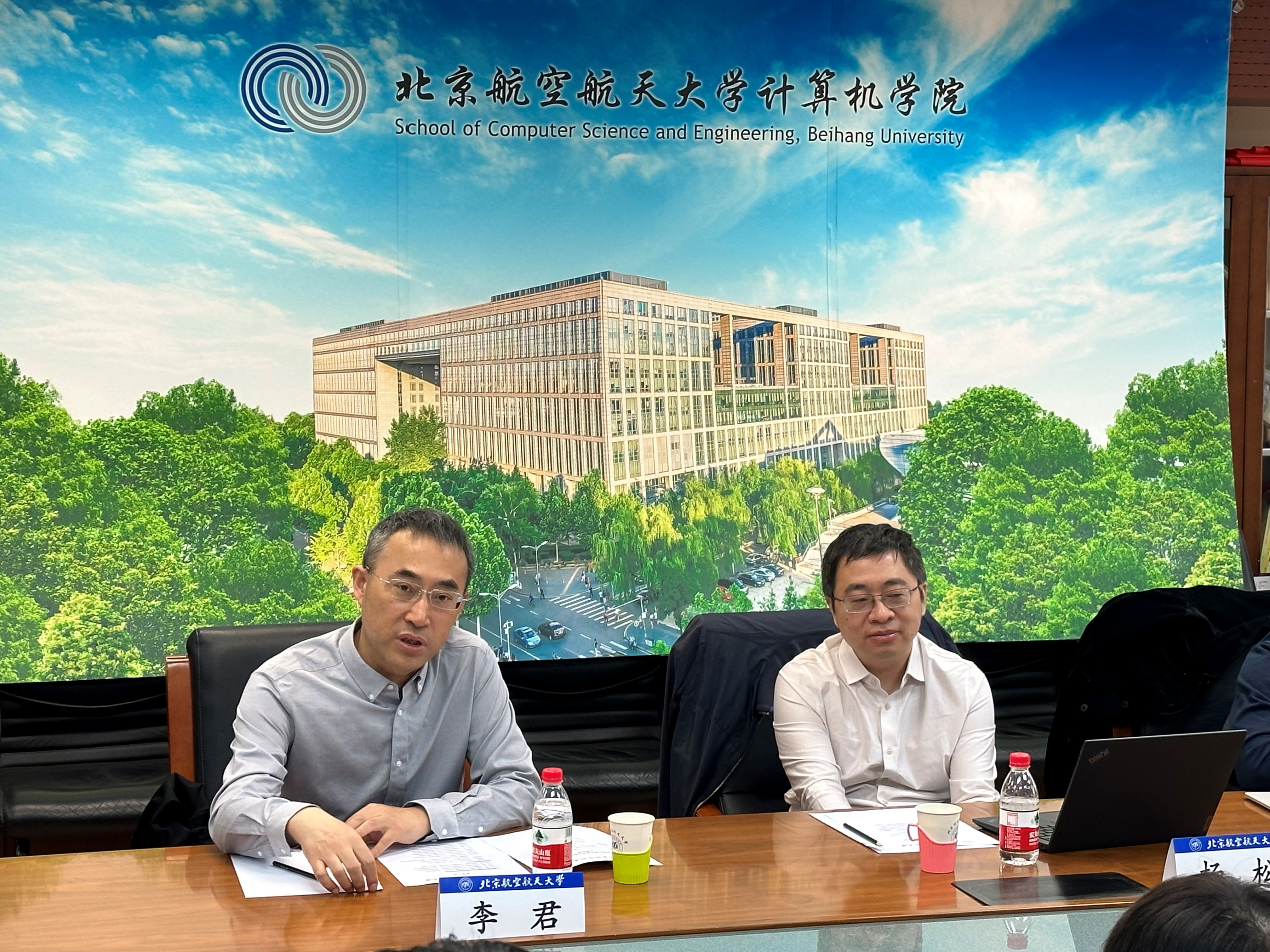4月14日上午,人民日报社传播内容认知全国重点实验室专职副主任李君、科技发展部主任杨松、科技发展部副主任张峥、算法工程师闫洲一行4人到北航best365手机版官方网站交流,best365手机版官方网站院长王蕴红、党委书记李建欣、软件学院院长胡春明、刘祥龙副院长出席会议。