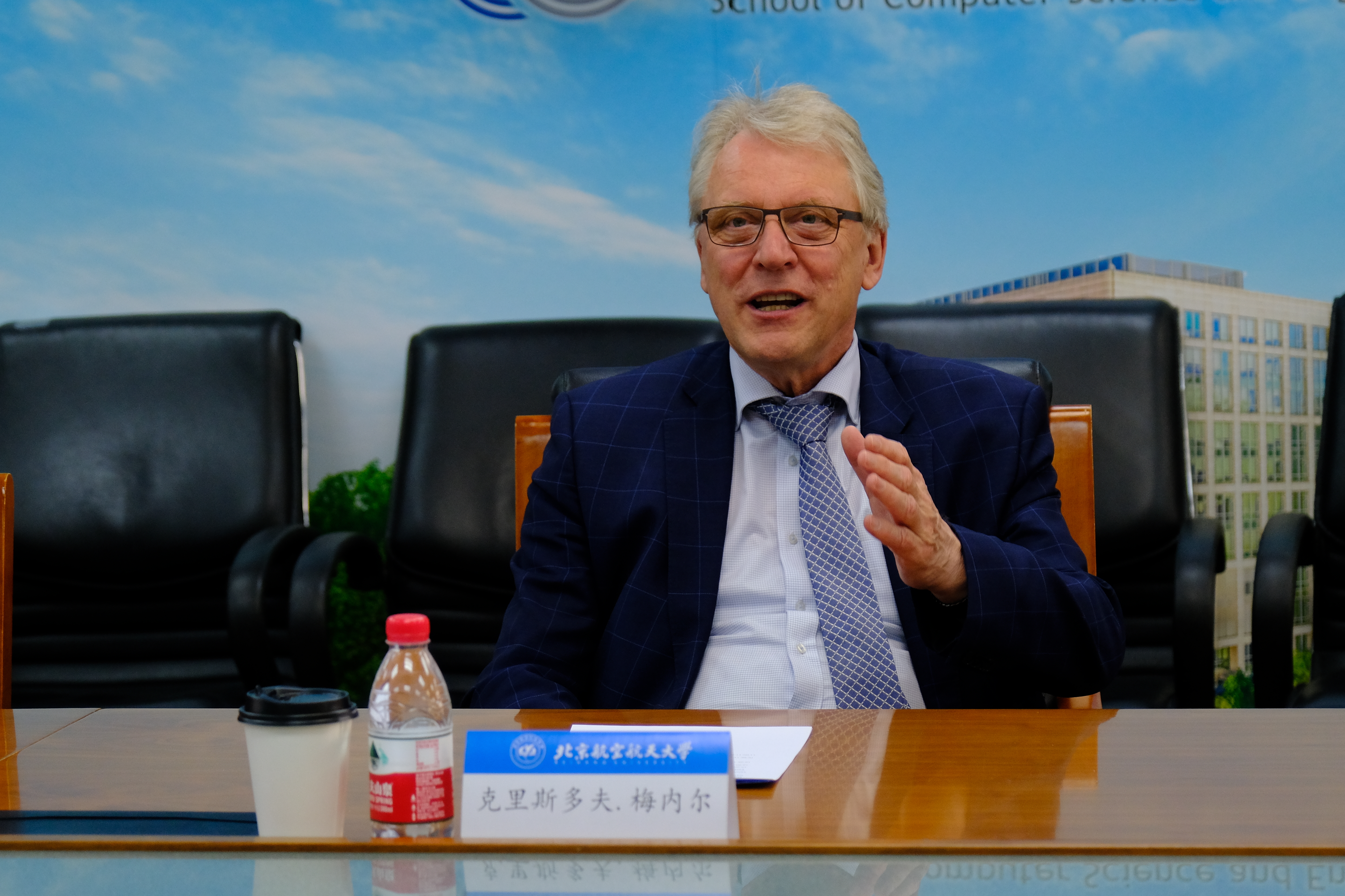 5月8日上午,德国哈索-普拉特纳数字工程研究院院长、德国国家科学工程院院士克里斯多夫.梅内尔一行访问北航best365手机版官方网站。中国科学院院士、best365手机版官方网站教授钱德沛,best365手机版官方网站党委书记李建欣在新主楼G849会议室会见了来宾,学院相关负责人陪同会见。