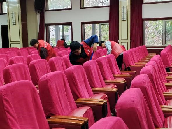 活动当天,阳光明媚,在简短的活动启动仪式后,同学们迅速分组投入到服务中。首先,同学们对敬老院的多功能厅和广场进行了全面清扫。多功能厅是老人们日常活动的重要场所,广场则是他们散步、锻炼、晒太阳的开放空间。大家分工明确、干劲十足,不怕脏、不怕累,用实际行动为老人们营造了一个更加整洁、舒适的生活环境。清扫工作结束后,同学们又协助敬老院工作人员进行老年人服务手册的整理与贴标签工作。大家认真核对每一本手册的内容,确保标签粘贴准确、整齐。通过这项工作,同学们不仅体会到了基层养老服务工作的严谨与辛劳,也更加理解了“尊老、爱老”不仅是一句口号,更需要从点滴做起、从细节落实。